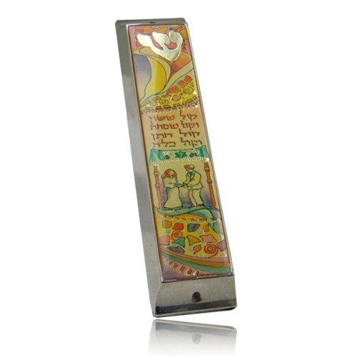 Gold Colored Wedding Chupa Mezuzah - Bride and Groom Under the Wedding Canopy - Parchment Included