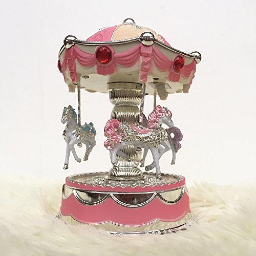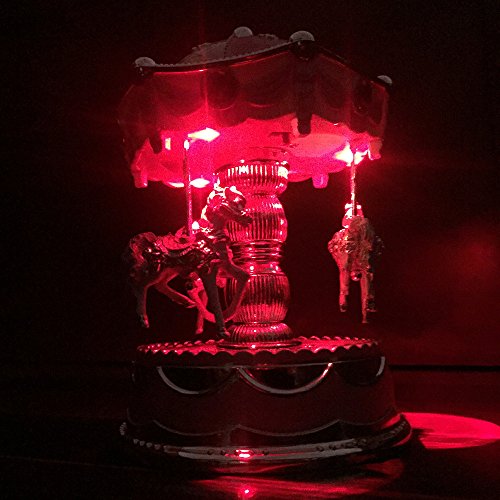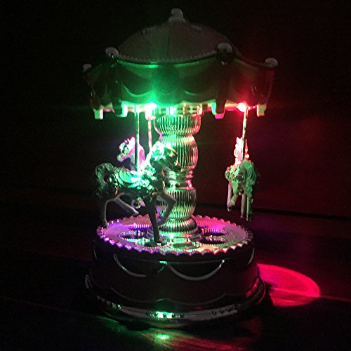 - Feature : Musical Playing well known traditional melodies / Three horses can rotate when music play / Material: Polyresin,made with high quality clockwork music box / The music and light of music box make your room more romantic in the evening / A good gift for your honny or friends(included batteries)