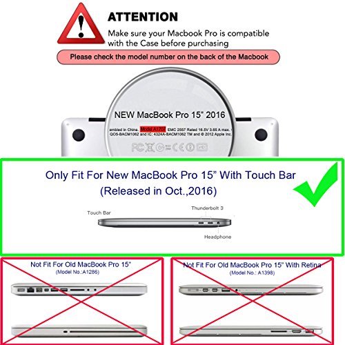 The case Only fits for Newest MacBook Pro 15 Inch with Retina Display (A1707 with Touch Bar, Release October 2016), NO Cut Out design.