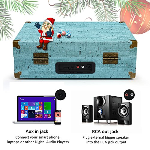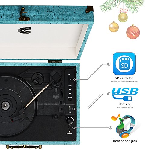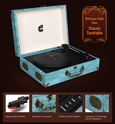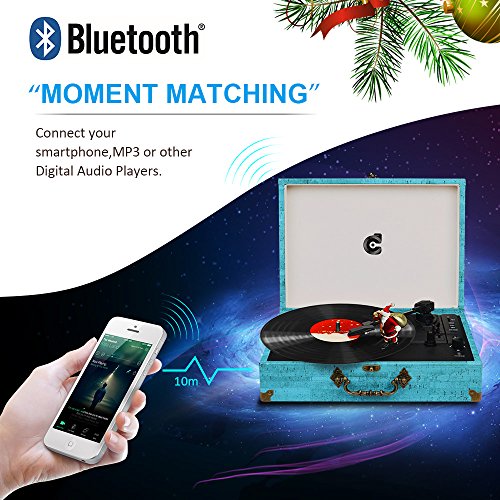 CMC Portable Bluetooth 3 Stereo Speed Turntable with Built in Speakers, Vintage Style Vinyl Record Player, Sky Blue
