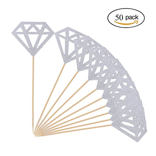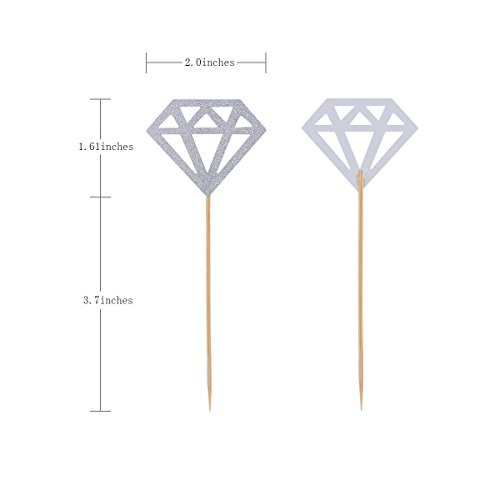 Product description: These silver glitter diamond cupcake toppers are made of good qualtity glitter papaer, sliver front and white back, easy to distinguish between the positive and negative, each cupcake topper is approx 5.31" x 2.0", suitable size design, just gently insert them into your cakes, give your cake a perfect display at the bridal shower, party and more, make your cake look more lovely and delicious Product details: Diamond size:5.0 x 4.1cm/ 2.0" x 1.61" Total size:13.5 x 5.0 cm/ 5.31 x 2.0" Color:silver Material:paper,stick Weight:30g Package included: 50 x Silver diamond cupcake toppers