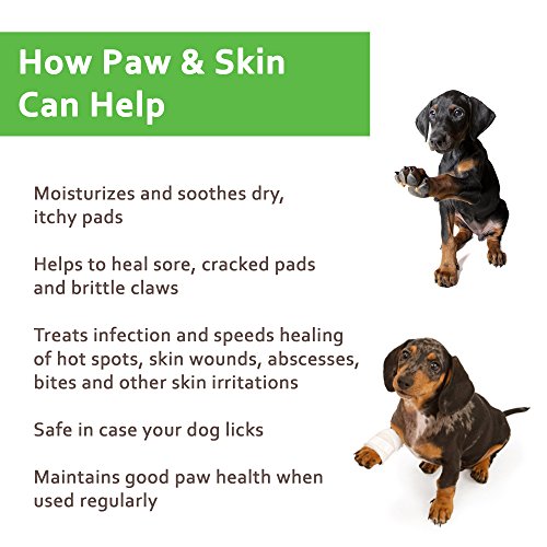 -. Feature : MOISTURIZES & SOOTHES dry itchy paw pads, cracked sore pads, brittle claws, dry skin / PROTECTS PAWS: Protect against icy cold snow, road salt, hot asphalt, beach sand, dry dog paws / WOUND CARE: Natural antiseptic for hot spots, skin wounds, abscesses, and bites - LICK SAFE! / ALL NATURAL! Healing herbs in a base of Vitamin E, coconut oil, olive oil, bee's wax, propolis / MAINTAIN PAW HEALTH: Use paw cream regularly to maintain soft, healthy paws