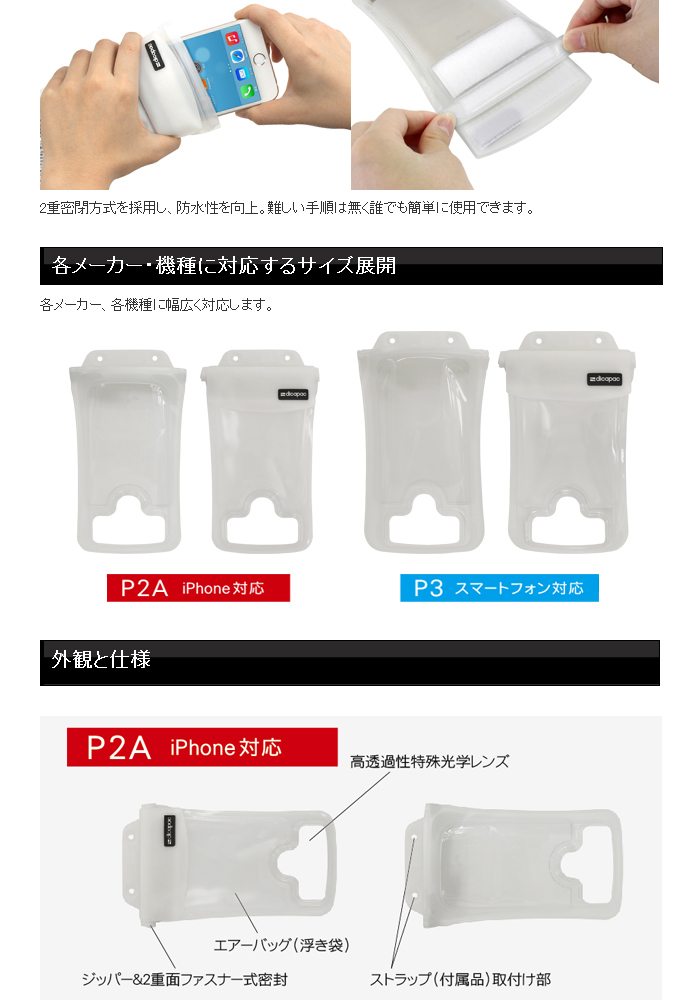 ●お手持ちのiPhoneやスマートフォンを手軽に防水化することができます