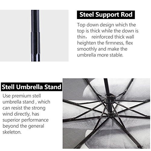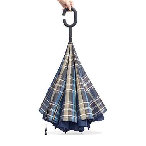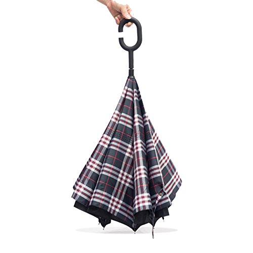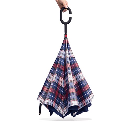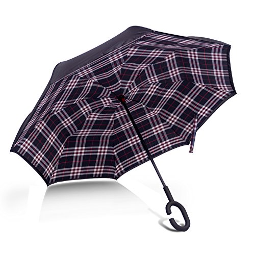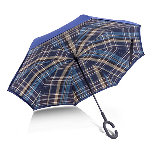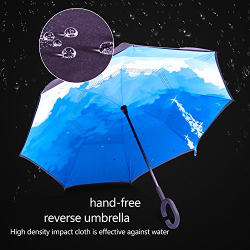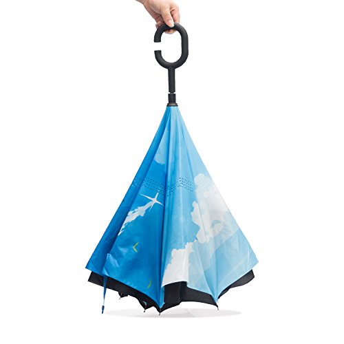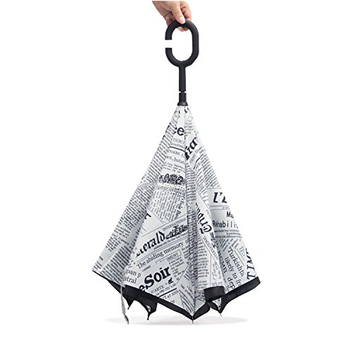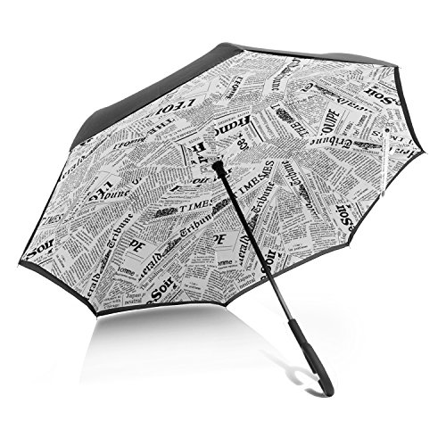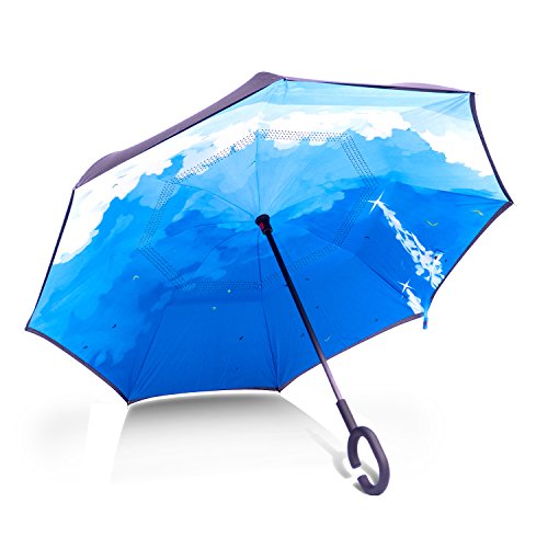 Studio : Azuki Publisher : Azuki Binding : Misc. Product Description No more worry of rainy day from now on! Soft Plastic C Shank Holding an umbrella with your wrist, you can free your hands use your phone, or even hold a baby. Water Repellent Fabric 210T 75D cloth density anti dirty, quick-drying Protect you from rain, strong wind, snow, drip permeation and ultraviolet, etc. Double cloth density get better thermal insulation Umbrella Frame Material Strong carbon fiber central rob and double 8 durable steel frame ribs can prevent umbrella form flipping inside out, and lightweight. New Inverted Design When you jump on a crowded train after escaping a downpour your dripping wet umbrella usually brushes up against your bag, your clothes. But inverting the design, the wet side of umbrella faces inward when closed, exposing only dry side. And that's not all: the creative design makes it easier to open when coming out of a car or other covered area, and when not in use the umbrella can stands up on its own! Double layer Inverted umbrella Unique design double layer inside out umbrella, make it easy on a raining day, won't wet your car, documents or others. Advanced double layer ribs made inverted umbrella more sturdy. inner layer's air vent increase air circulation. Measure 31.5"" long and 41.5"" in diameter when open. It's large enough to shelter both you and your loved one from the downpour Easy to Operate and Safe Use With a simple click with embedded button, can easy open and close umbrella in confined spaces when entering or exiting a building or car and it's less awkward and more safer to open and close when in crowd, since the danger to poke in people's eyes has been removed by the design. Stand Up On Its Own Easy to place, it can stand up on its own when closed, saving much space for you. 0