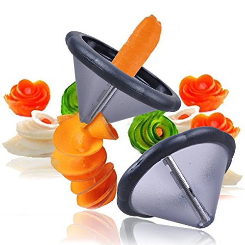 Prokitchen Easy Carrot Cucumber Spiral Curler Sharpener Crinkle Cutter Stainless Steel Carrot Flower Salad Decorating Maker Peeler for Fruits and Vegetables Curl Slicer with Sharp Blade Pack of 2