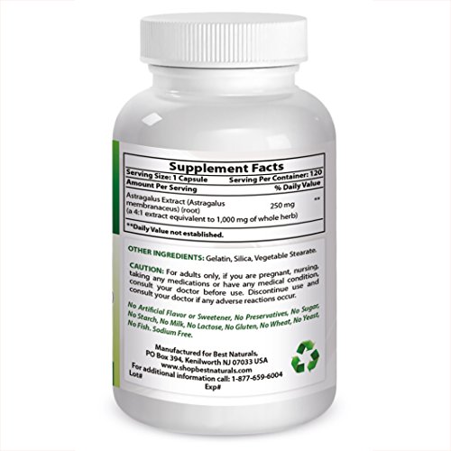 Best Naturals Astragalus Capsule, 1000 mg, 120 Count