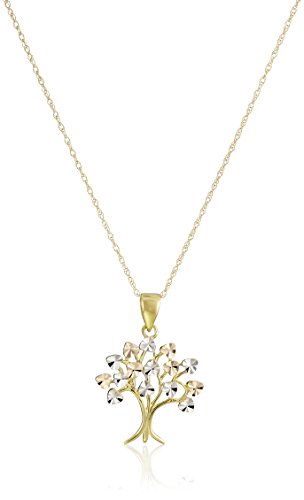 -. Title : 14k Yellow Gold Family Tree of Life Pendant Necklace, 18"
