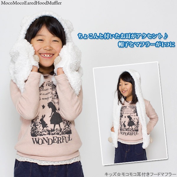 キッズ☆モコモコ耳付きフードマフラー