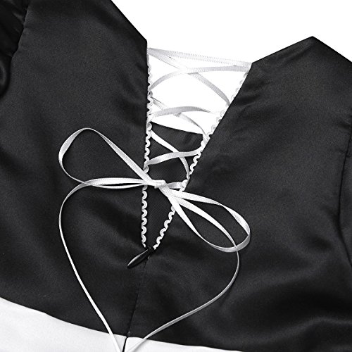-. Feature : Infant Baby Girls Halloween Costume / Round neckline with lapel design, short elastic bubble sleeves, waist with a stitched bowknot, lace-up V back with hidden back zipper closure / 3 layers dress, top shiny polka dots organza layer, 1 layer satin and 1 lining with netting for additional fullness / Matching hair hoop decorated with an irremovable bowknot / Suitable for Halloween, cosplay, party, photography, holiday, etc.