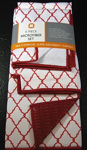 -. Title : 5 Pc. Microfiber Set- Drying Mat, P.R.Inted Kitchen Towel, Solid Kitchen Towel, P.R.Inted Scrubber, Solid Dishcloth- Geometric Pattern