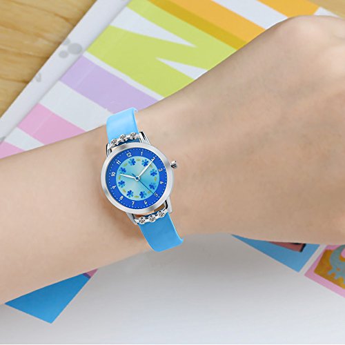Easy to read with Arabic numberal markers, good looking with fashion flowers dial and diamomds in both of the case side, it is bueatiful gift for your children,not only suit for 3-12 years old kids, but also for 12+ young teens.