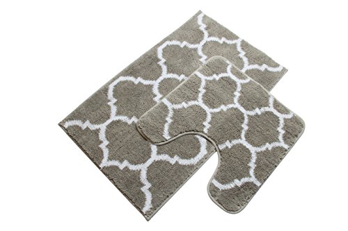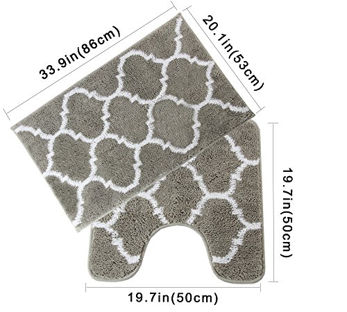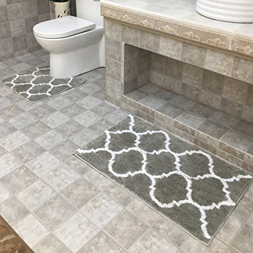 Homcomoda 2 Piece Bath Rugs Set Microfiber Washable Bath Mats with Contour Toilet Rug U-shaped for Bathroom(Grey)