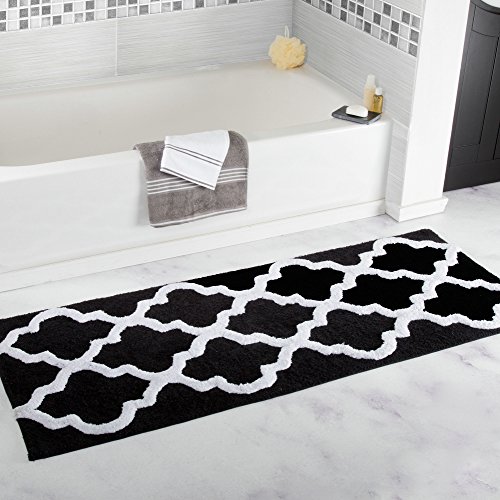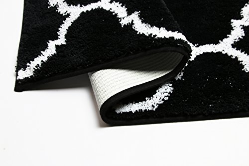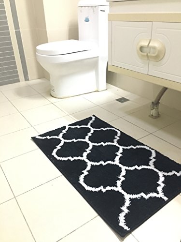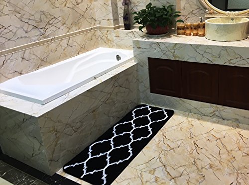 Homcomoda Microfiber Bathroom Shower Rug Geometric Bath Mats Washable Kitchen Floor Mats-17.72 by 47.24 Inch (Black)