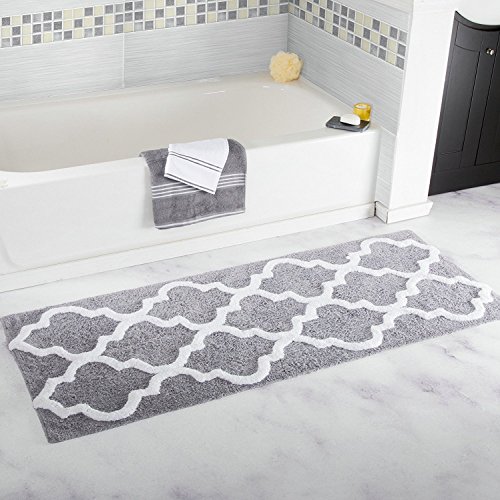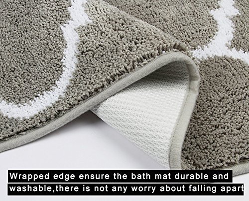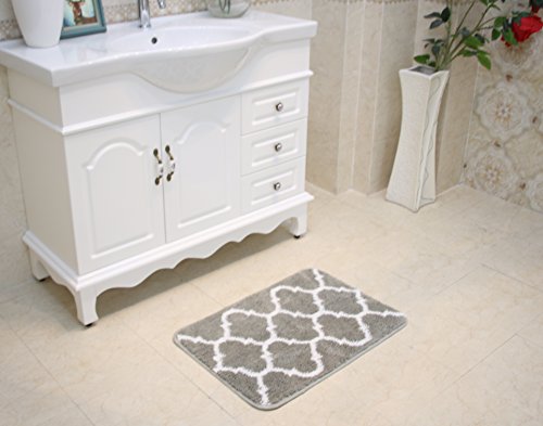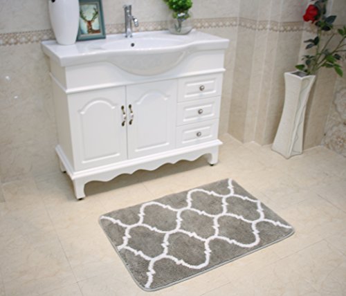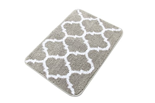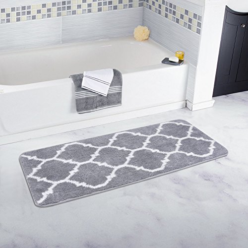 Homcomoda Microfiber Bathroom Shower Rug Geometric Bath Mats Washable Kitchen Floor Mats-17.72 by 47.24 Inch (24 by 35 Inch, Grey)