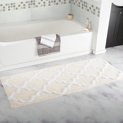 Homcomoda Microfiber Bathroom Shower Rug Geometric Bath Mats Washable Kitchen Floor Mats-17.72 by 47.24 Inch (Beige)