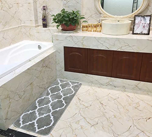 Homcomoda Microfiber Bathroom Shower Rug Geometric Bath Mats Washable Kitchen Floor Mats-17.72 by 47.24 Inch (Grey)