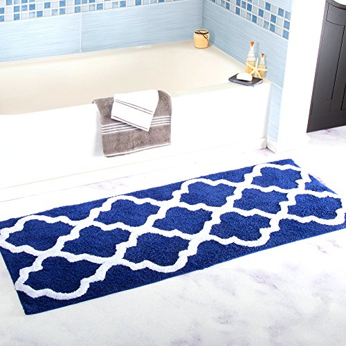 Homcomoda Microfiber Bathroom Shower Rug Geometric Bath Mats Washable Kitchen Floor Mats-17.72 by 47.24 Inch (24 by 35 Inch, Blue)