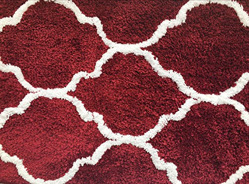 Homcomoda Microfiber Bathroom Shower Rug Geometric Bath Mats Washable Kitchen Floor Mats-17.72 by 47.24 Inch (Red)