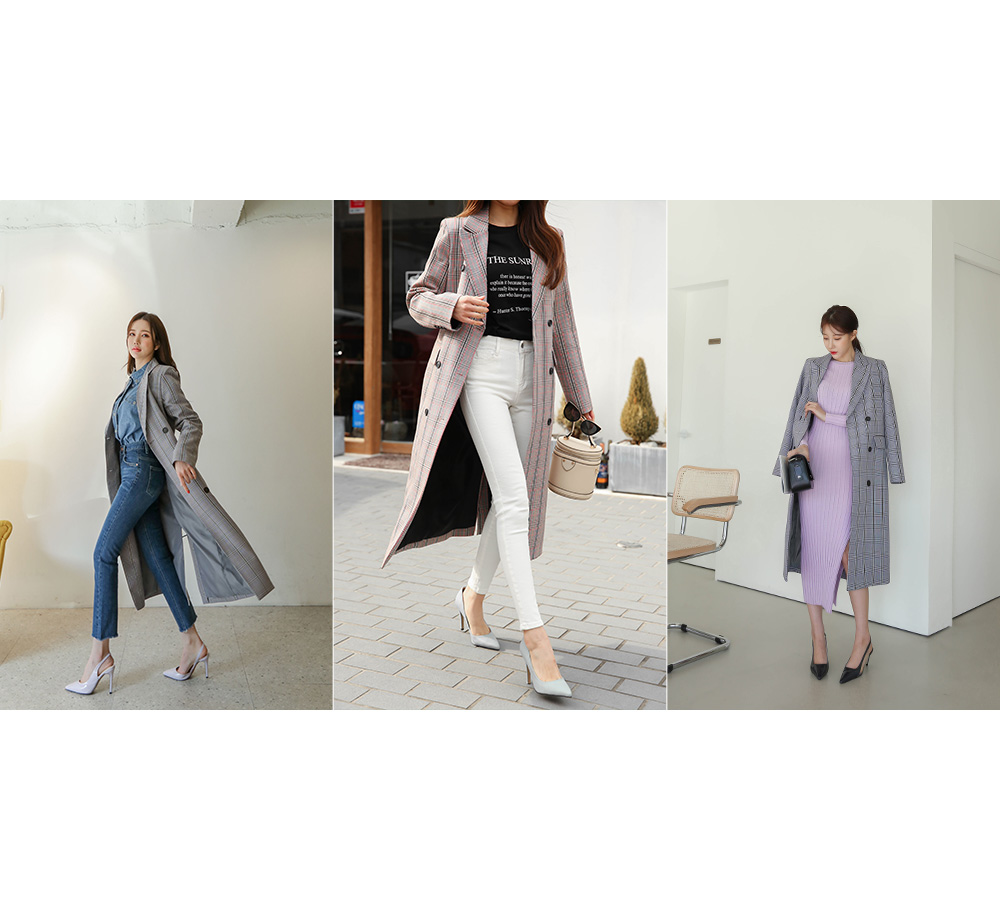 체크패턴으로 모던한 스타일을 완성해주는 코트에요