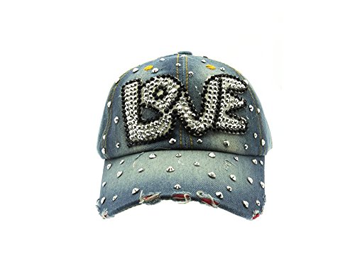 Product DescriptionBlue LOVE Fabric Studded Denim Buckle Adjustment Hat Cap. One size fits most.0