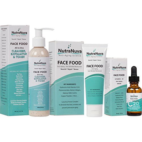 -. Title : NutraNuva Face Food Natural Skin Care – Stop-the-Clock! Beauty Gift Set - Anti Aging Anti Wrinkle Moisturizer + Anti Aging Serum Complex with 20% C + All-in-One Cleanser, Exfoliator & Toner (3 Items)