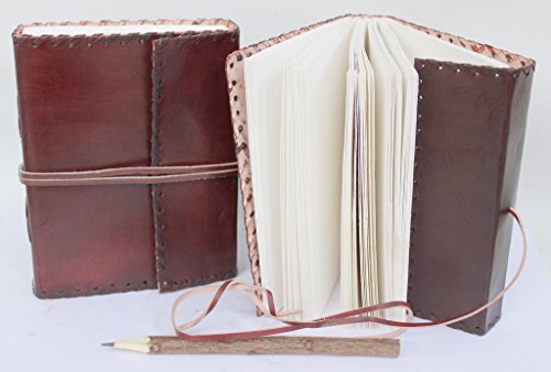 Incredible Antique Arts- Handmade Vintage Classic Plain leather journal with Side Stitch Soft Leather Notebook 7" x 5" Unlined Cream Paper - Sketchbook Travel journal leather Diary - Men & Women + Pen