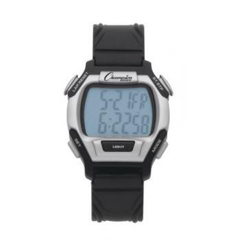 The Champion Sports Sport & Referee Watch features a rugged sports watchband, 10 Memory, Bright EL night light display,24 Hour stopwatch. Every workout is stored as a separate recallable run, 12/24 hr. format with alarm and split release feature unlocks after 5 sec. to display current running lap time. Programmable countdown/count up time, recalls 10 cum & lap split to 1/100 of a second, dual timer, Hourly chime and water (up to 300') & shock resistant.Feature