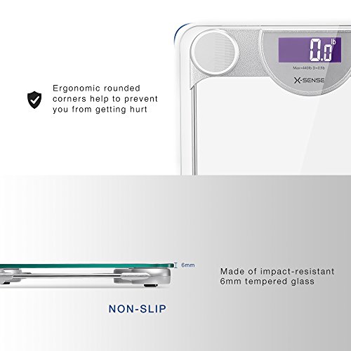 X-Sense 440 lb / 200 kg Digital Body Weight Bathroom Scale with Step-On Technology