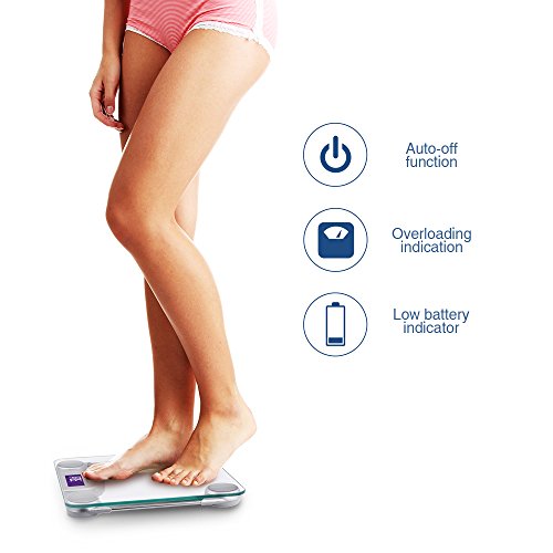 MULTIFUNCTIONAL: Supports auto-calibration and auto-off functions for the ultimate user experience; runs on 2 AAA batteries; multifunctional display shows low battery indicator as a reminder when replacement is needed; and, shows overloading indication, which helps to maintain the life of this scale