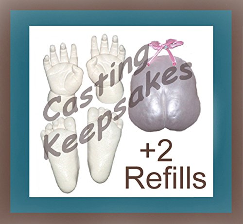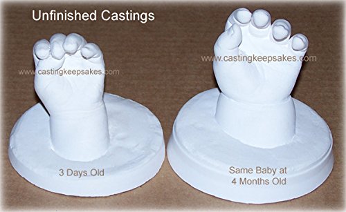 - Feature : Create a 3D exact replica of baby's hands, feet and/or bottom. (Ages 0-9M) / Easy, Safe & Wiggle-Friendly. Baby is involved for less than 2 minutes. / The rubbery nontoxic mold captures every precious detail down to fingerprints. / This kit contains the materials for 7 stone castings: 2 feet, 2 hands, 1 baby bottom & 2 extra sets (for trials runs, etc) / Clear glaze finish included (mimics ceramic fire glaze finish).