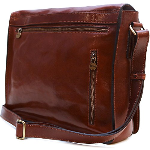 -. Brand : Floto -. Color : Brown -. Department : mens -. EAN : 0753640530368 -. Feature : Handmade Full Grain Leather - tanned by hand in Tuscany with no chemicals - only vegetable extracts and natural oils. The color penetrates deep into the leather so scratches are easy to polish out. This is a supple leather with bright and vibrant colors. It has a scent that is perfume for leather lovers. The older the better - over time this bag will develop a beautiful patina and have a warm, silky touch. / Large - 14" L x 12" H x 3.5" D - Adjustable Cross Body Strap / 3 Zip Pockets for Smartphones and Tablets / 2 Smartphone Pockets / Small Laptop Divider / Bag Expands to 16" wide for Larger Laptops / Rolling Lage Strap -. Model : 1105 -. PackageQuantity : 1 -. ProductGroup : Apparel -. ProductTypeName : LAGE -. Size : Large -. Title : Floto Firenze Messenger Bag in Brown Full Grain Calfskin Leather - Large -. UPC : 753640530368