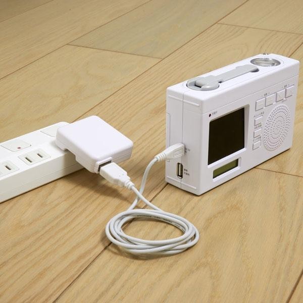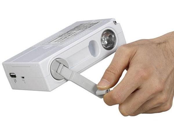 自宅・通勤・非常時など様々なシーンに対応。手回し、乾電池、AC充電、USB充電の4WAY充電対応。スマートフォン充電機能あり。 |