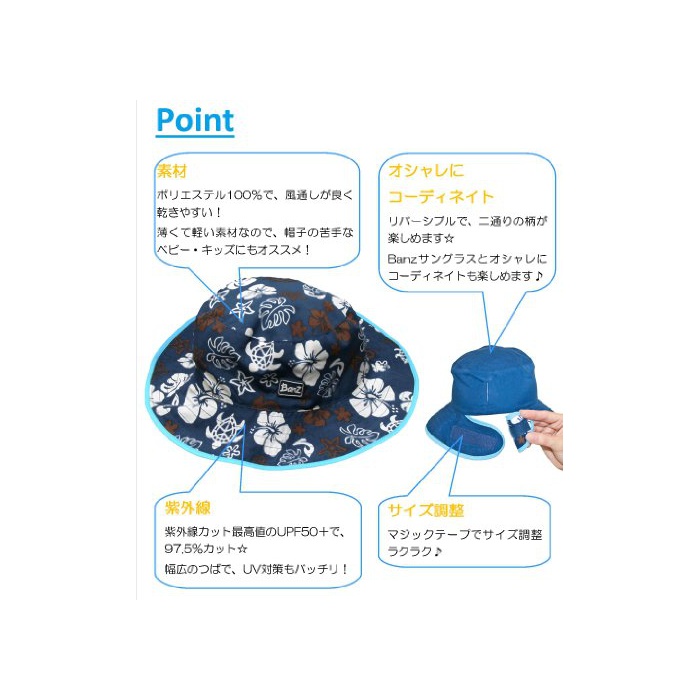 원본상품명: Banz(バンズ) UPF50+ UVカット リバ?シブルハット ベビ?キッズ用
