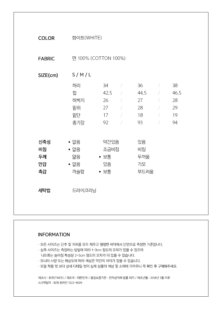 MD COMMENT일자로 떨어지는 핏감이 매력적인화이트 스트레이트 팬츠를 소개합니다 모델도 입어보고 반한 깔끔한 핏감으로md추천 아이템입니다:) FABRIC :탄탄한 코튼원단으로 제작되어 쉽게 늘어나지않고 깔끔한 핏을 유지해줘요~DETAIL:반하이 웨스트핏으로 다리는 더욱 길어보였고무릎부분 트임을 더해주어 스타일리시한 느낌이에요 밑단엔 네츄럴한 컷팅으로로퍼나 샌들과도 데일리하게 어울려졌어요~^^ SIZE:정사이즈로 제작된 팬츠입니다 평소 55사이즈 혜림모델은 S사이즈를 착용하였고 알맞고 편안하게 피팅하였습니다