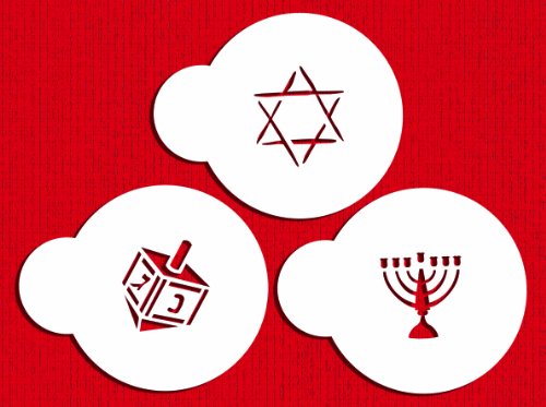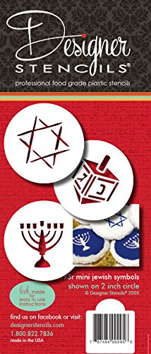 Designer Stencils C193 Jewish Symbols Cookie and Cupcake Stencils, Small, (Dreidel, Star of David, Menorah), Beige/semi-transparent