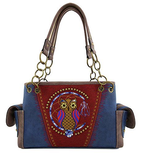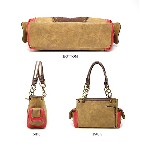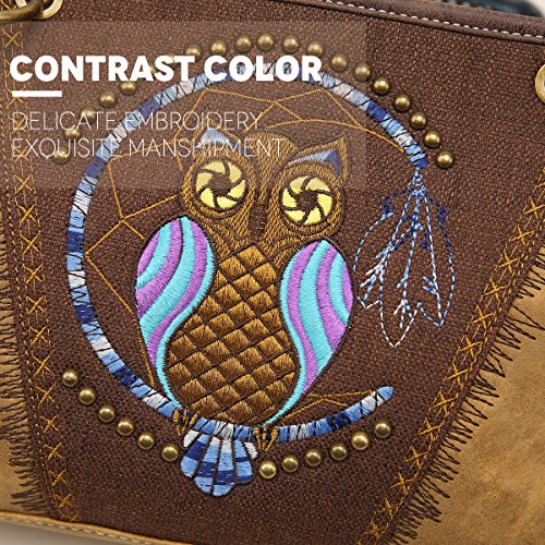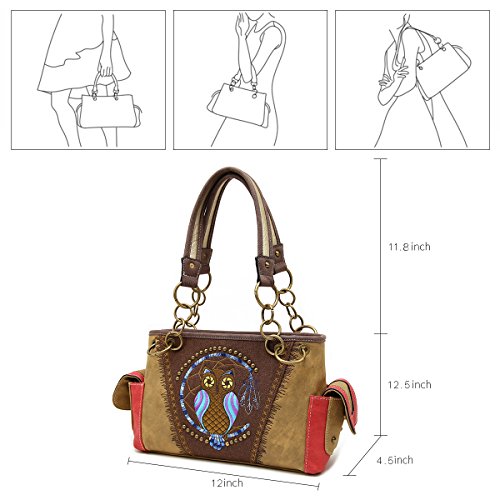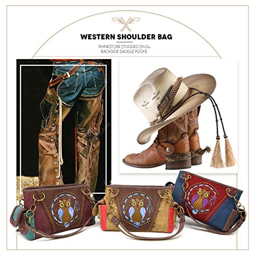 Tote Bag ANGIE & ALLIE Western Shoulder Bag Owl Rhinestore Studded with Backside Concealed Saddle Pocket Cowgirl Handbag