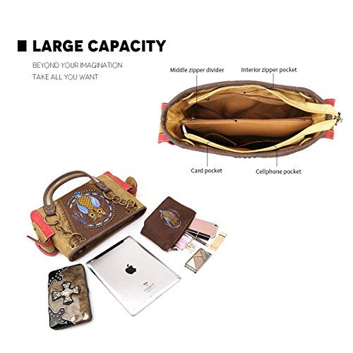 EXQUISITE EMBROIDERY & LEATHER-BOUND: Stitched with embroidery, our bag will give you ourstanding visual performance. With the reinfored PU leather-bound, the perfect combination of unique and utility!