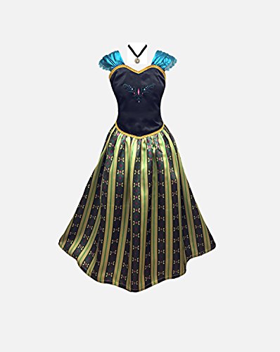 Complete costume include dress, and Anna coronation choker necklace as shown. Limited Edition Dress is so adorable! American Vogue sticker included. Size 4-5 Years; Bust/chest (23 inches), Waist (22 inches), Length (32 inches). Size 6-7 Years = Bust/chest (25 inches), Waist (23 inches), Length (33 inches). Size 7-8 Years = Bust/chest (26 inches), Waist (25 inches), Length (36 inches); Size 9-10 = Bust/chest (27 inches), Waist (26 inches), Full Length (37 inches); Size 11-12 Years: Bust/Chest=30 inches, Waist=28 inches, Full Length=40 inches Size 12-13 Years: Bust/Chest=32.5 inches, Waist=31 inches, Full Length=41 inches"Feature