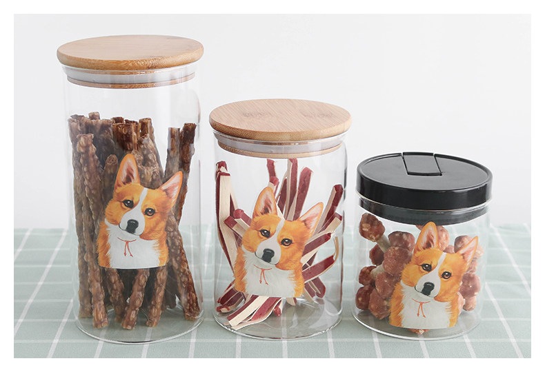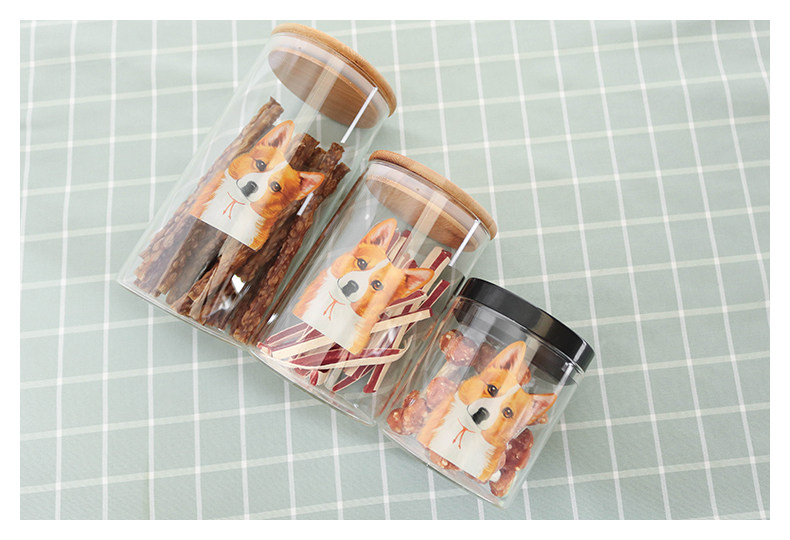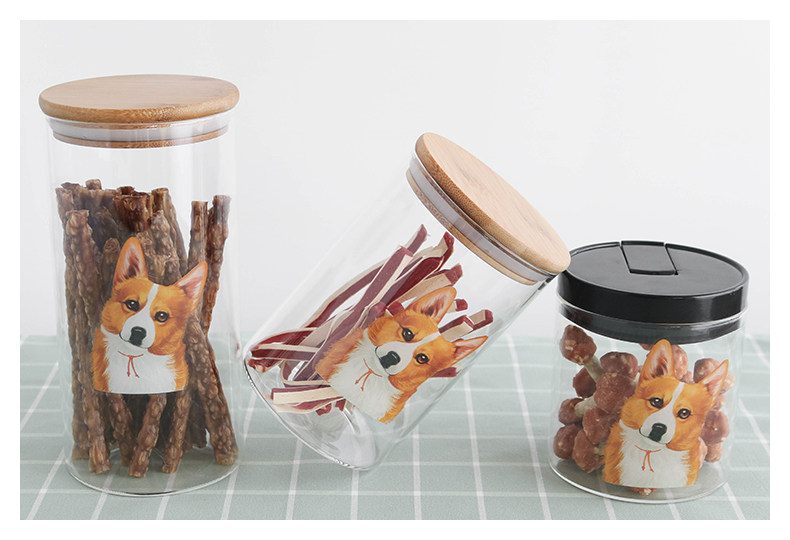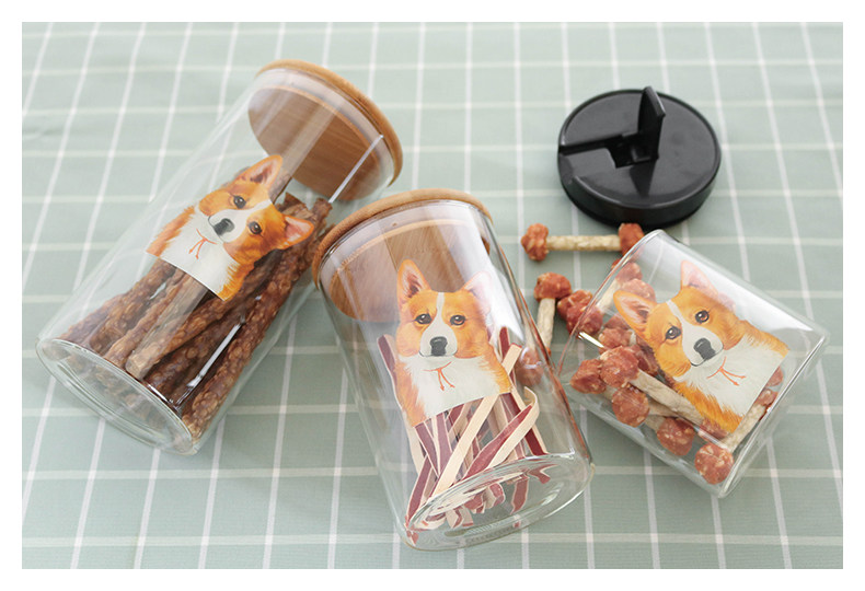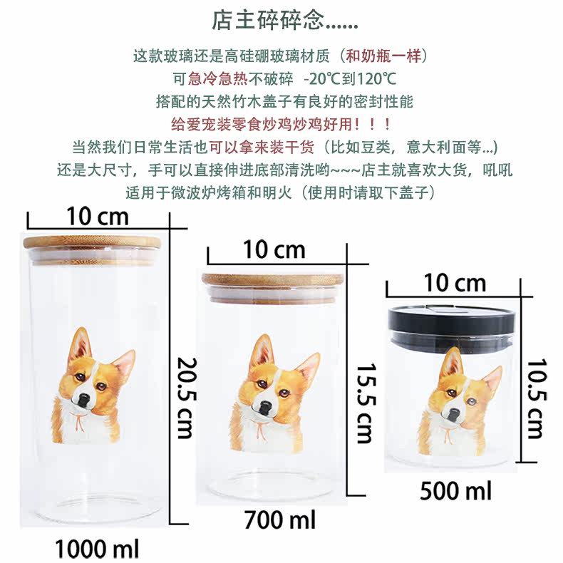 呆萌柯基系列玻璃密封罐意面收纳瓶食品储物罐玻璃瓶宠物零食罐子