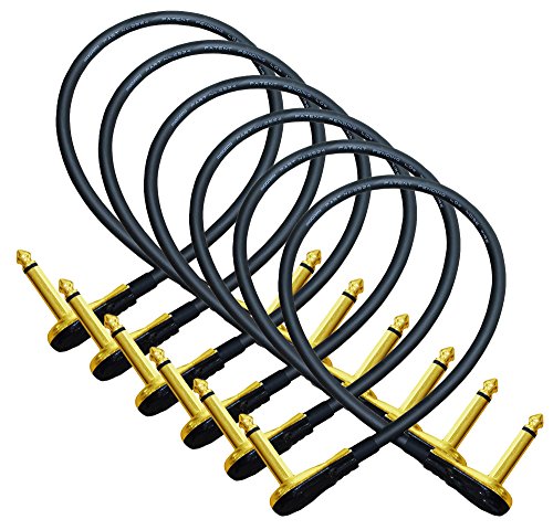 6 Units - Mogami 2524 - 12 Inch - Guitar Bass Effects Instrument, Patch Cable with Premium Gold Plated ¼ Inch (6.35mm) Low-Profile, Right Angled Pancake type TS Connectors