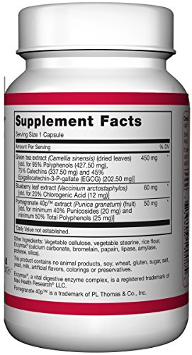 Pome-Green contains a super potent standardized extract of green tea (450 mg), which contains 95% Polyphenols, and 40% epigallocatechin-3 P-gallate (EGCG). Much of the research has been done with EGCG, one of the main constituents in Green Tea, and it appears to have the greatest antioxidant activity of all the green tea catechins.