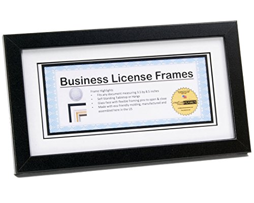 CreativePF [65EN-5.5x10.5bk-w] Black Business License Certificate Frame for Professionals Holds 3.5 by 8.5 with White Mat Includes Self Standing Easel Back with Hanger