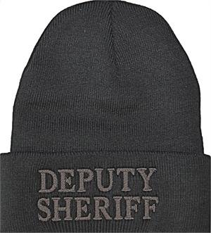 -. Title : Black knit beanie with grey embroidered Deputy Sheriff