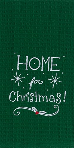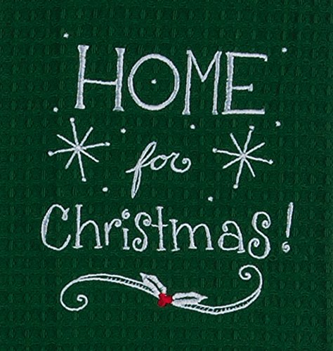 Home for Christmas Embroidered Waffle Holiday Green Kitchen Dish Towel Kay Dee