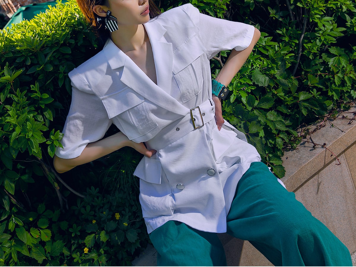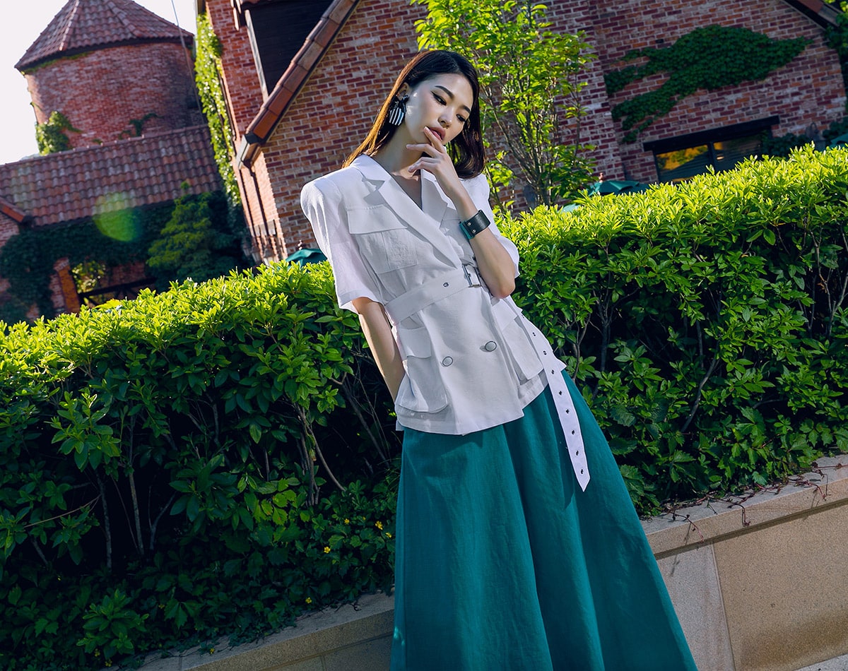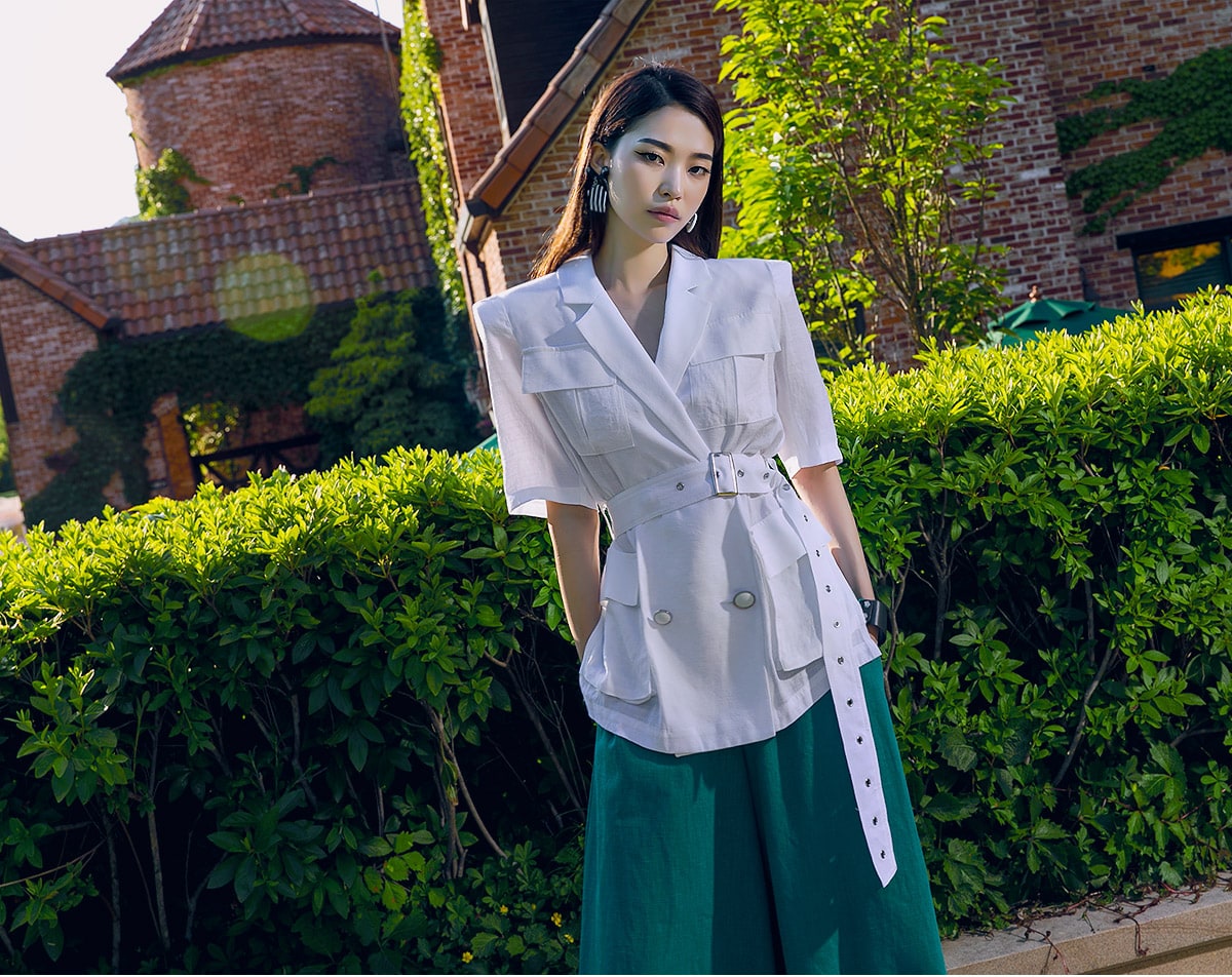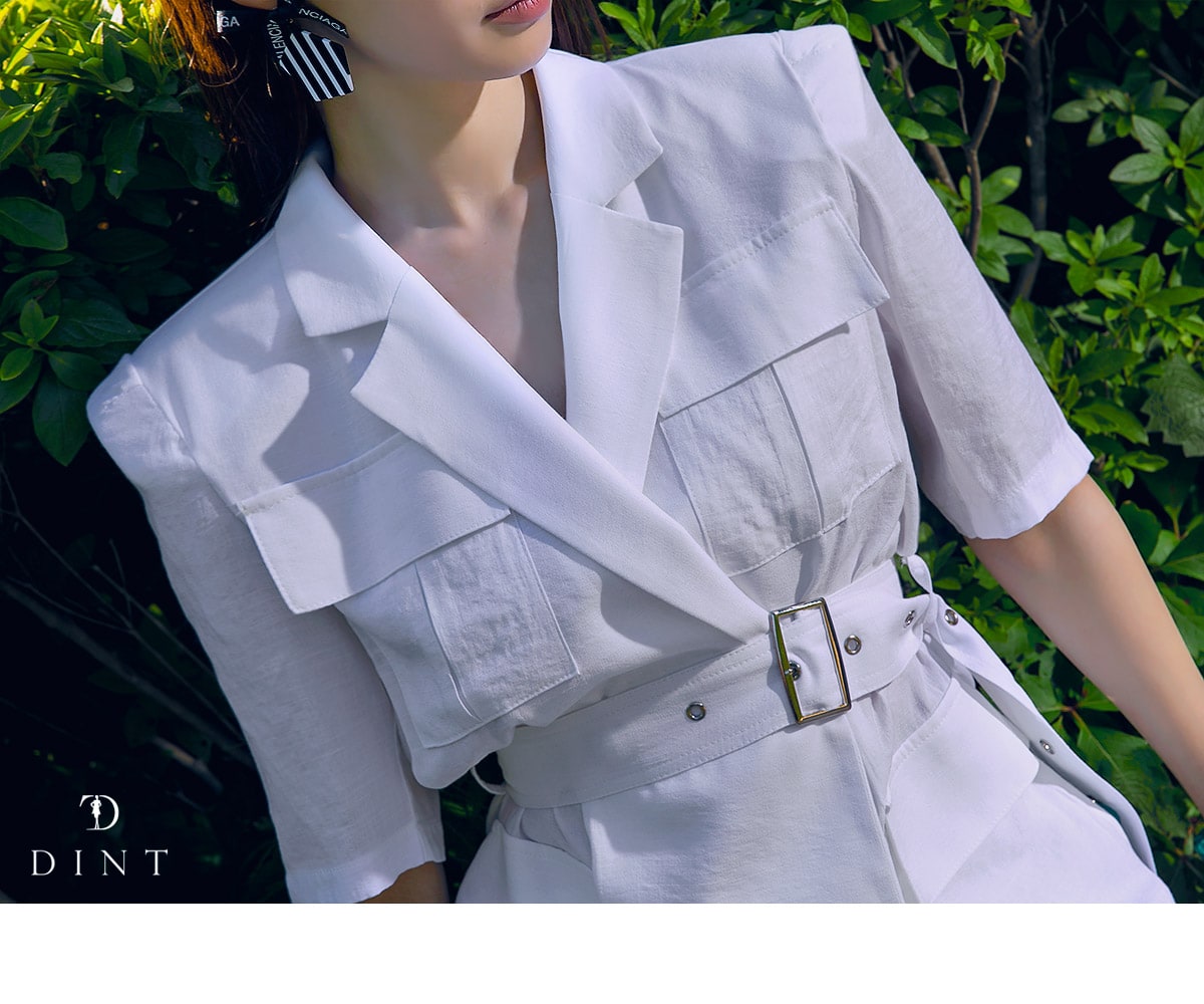 J-4966 아웃 포켓 린넨 자켓(벨트set) Ivory