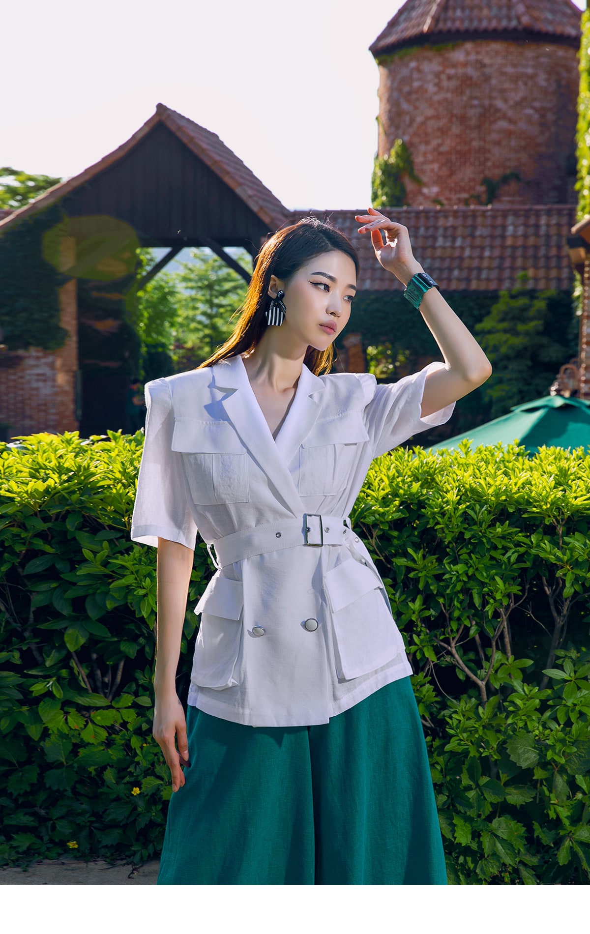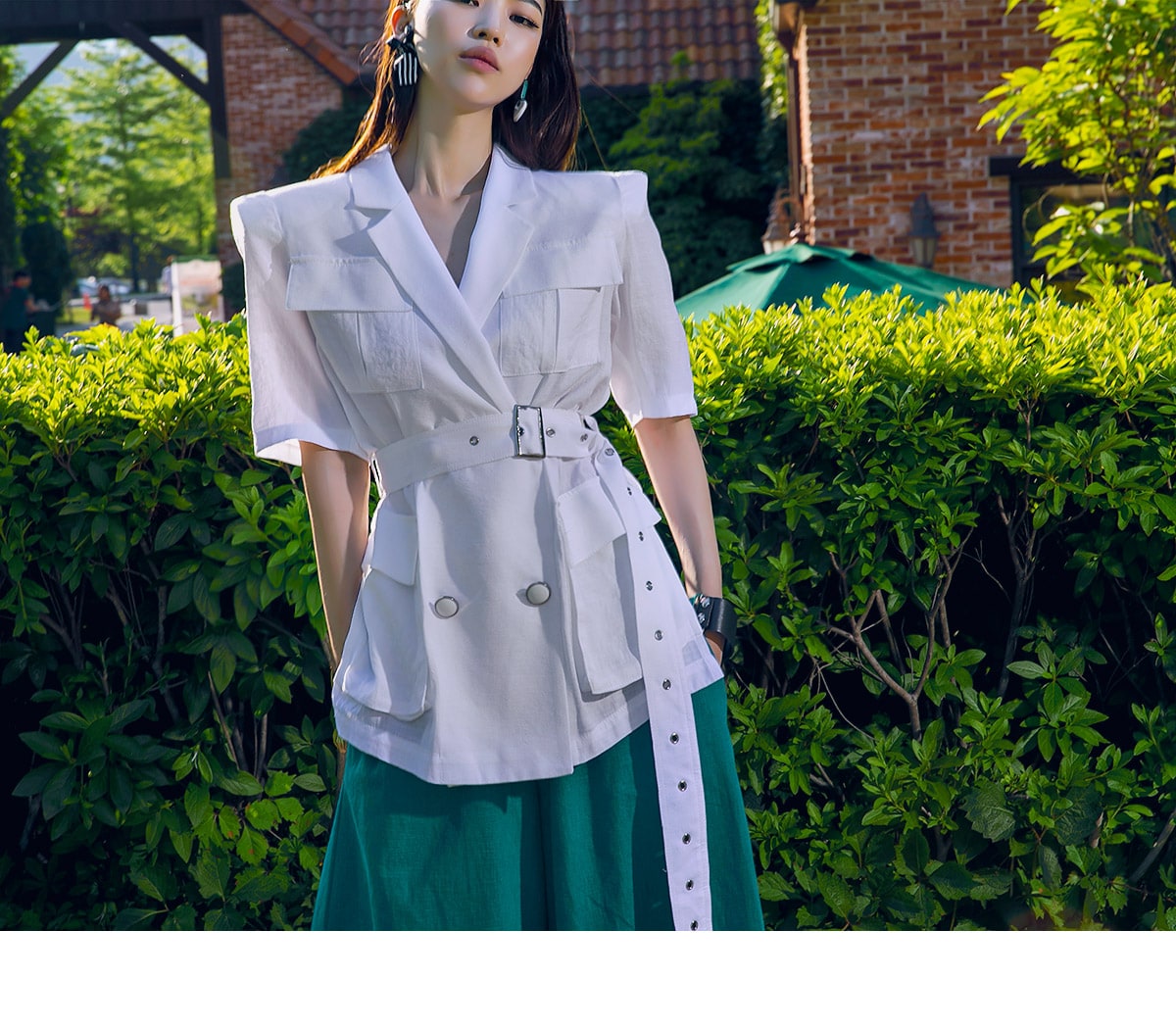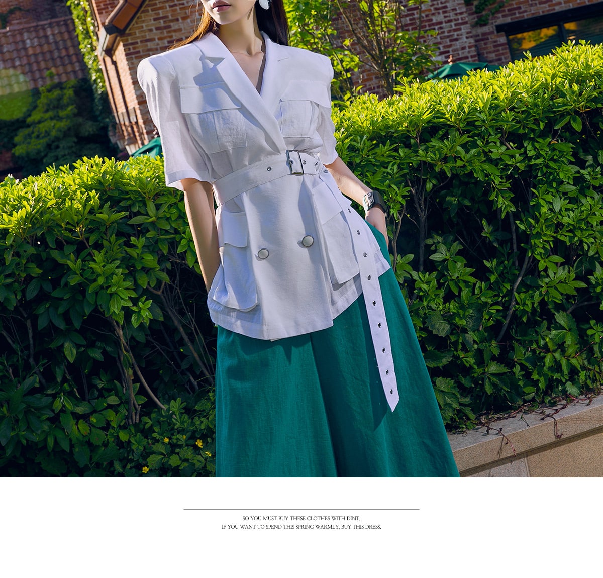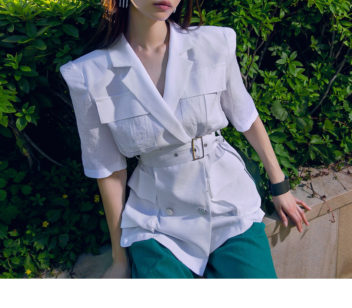 J-4966 아웃 포켓 린넨 자켓(벨트set) Ivory