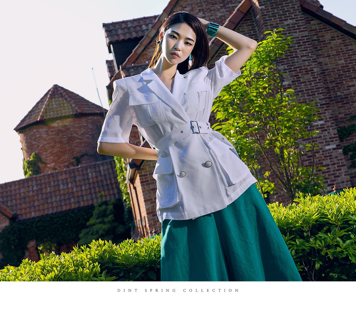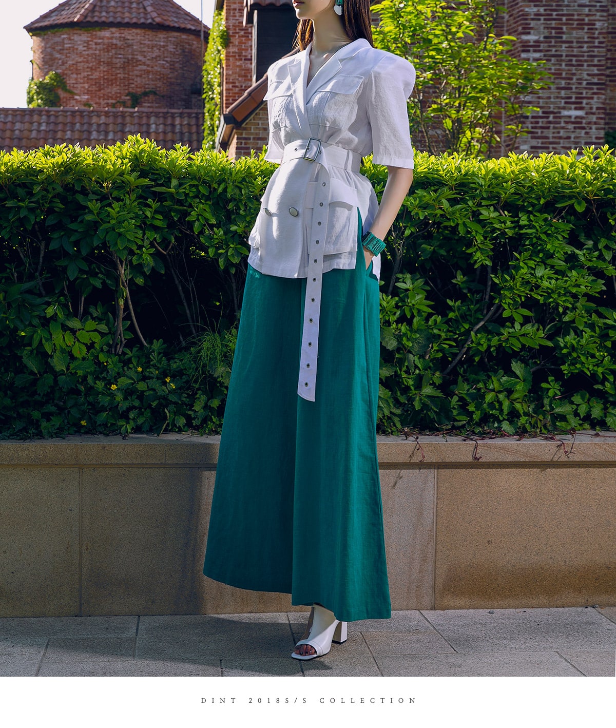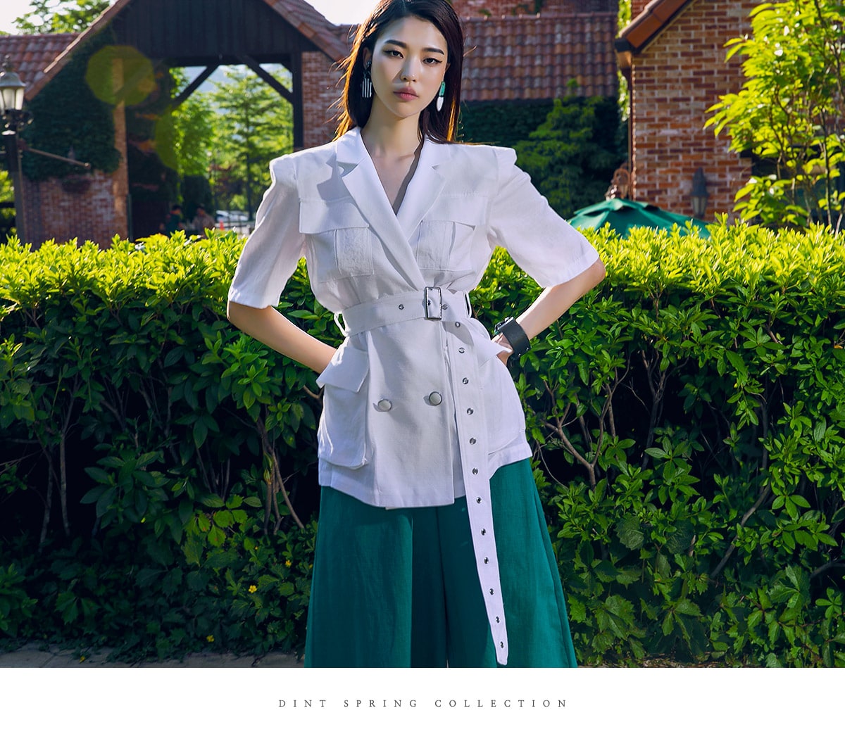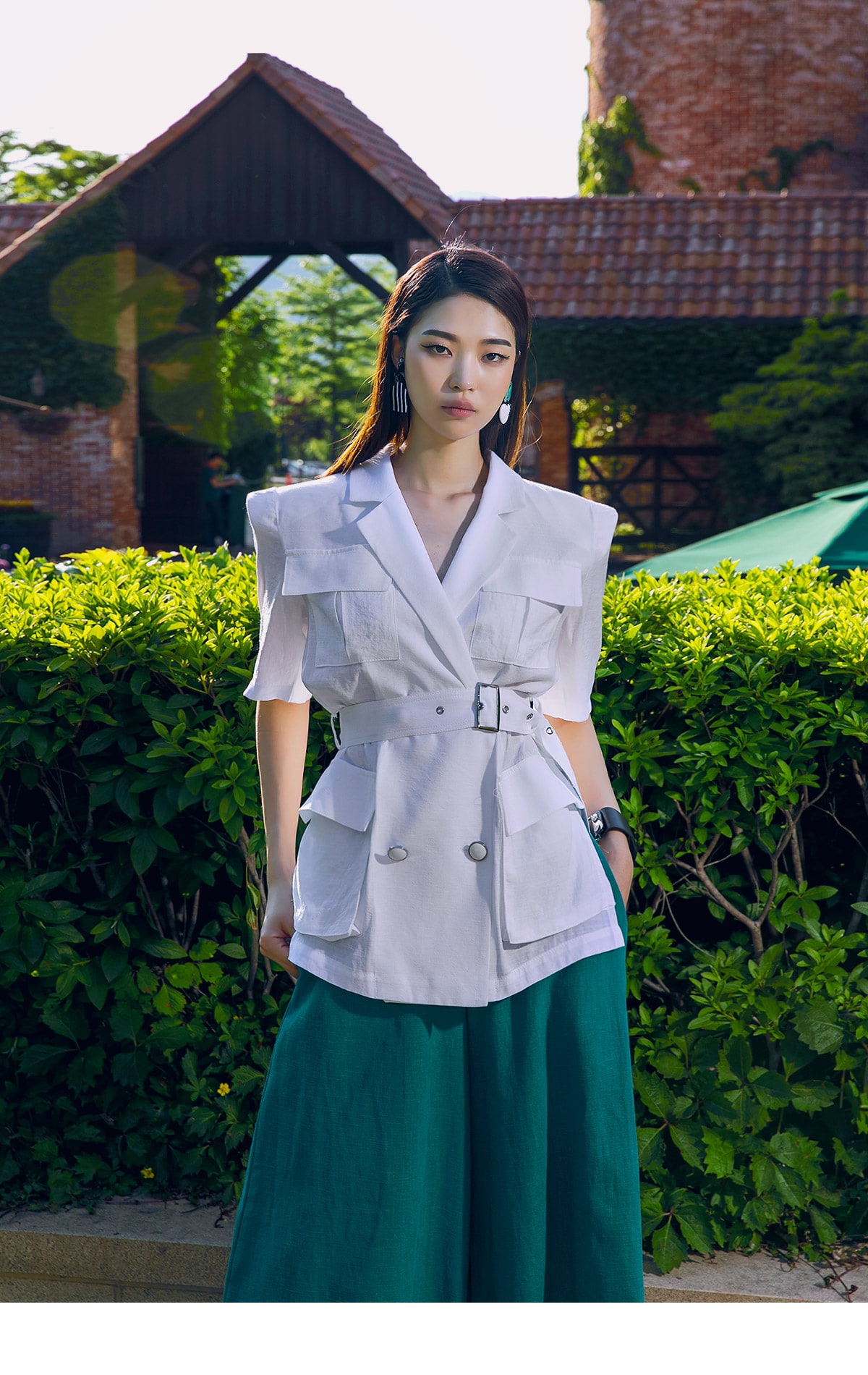 J-4966 아웃 포켓 린넨 자켓(벨트set) Ivory