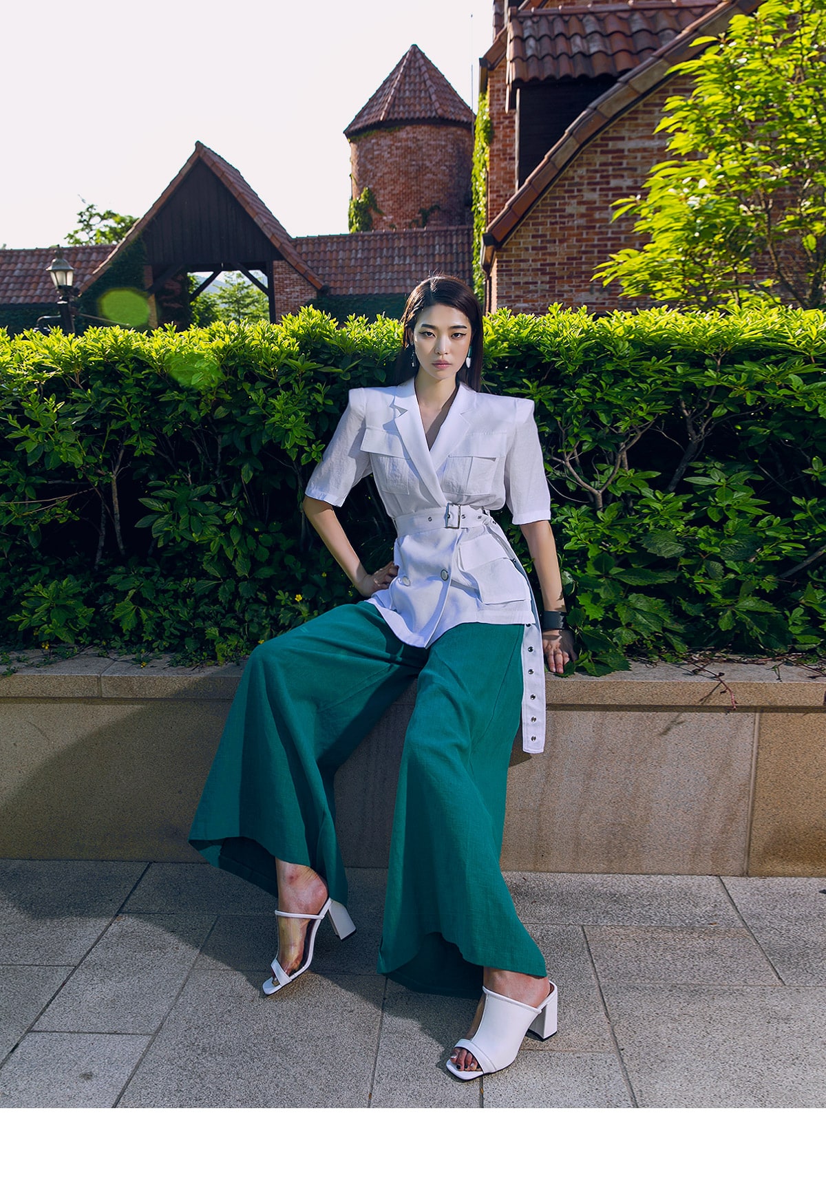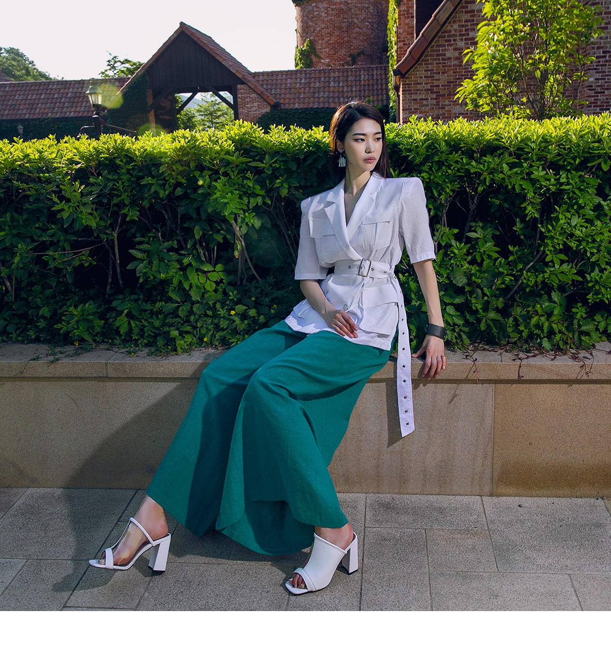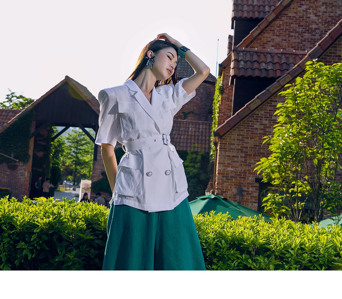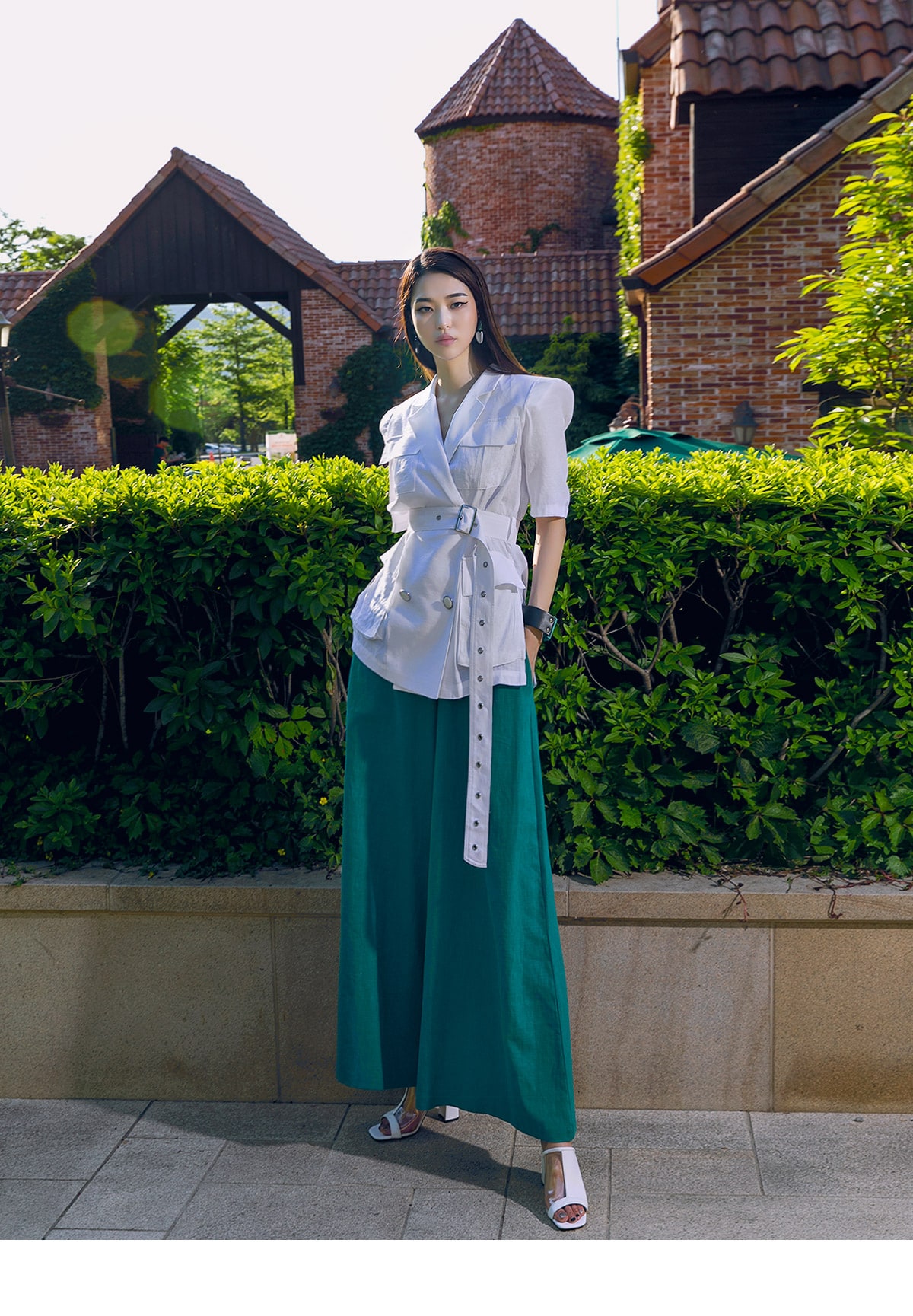 J-4966 아웃 포켓 린넨 자켓(벨트set) Ivory