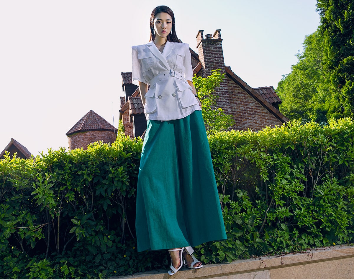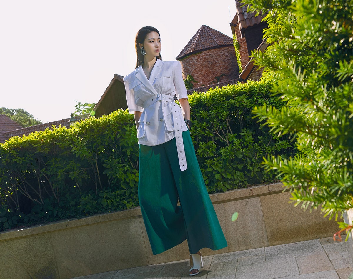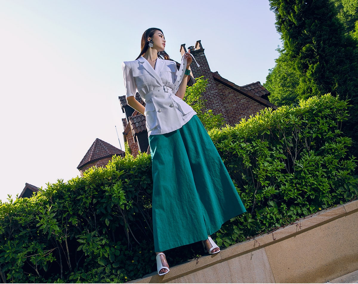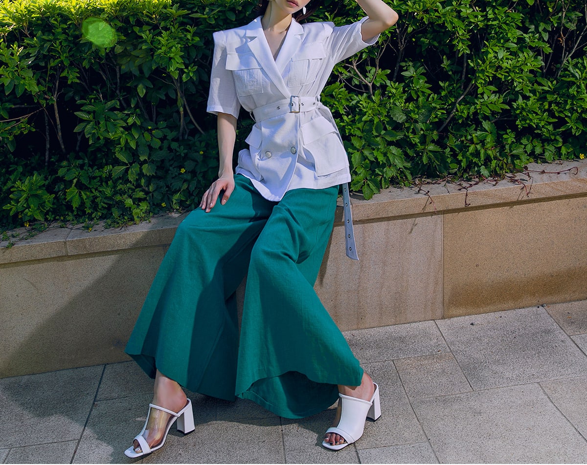 P1873 그레이스 린넨 와이드 팬츠 Blue green