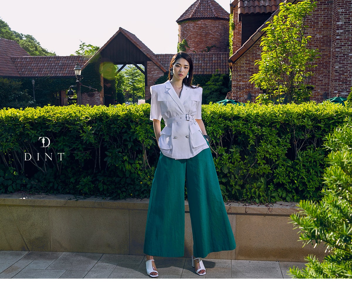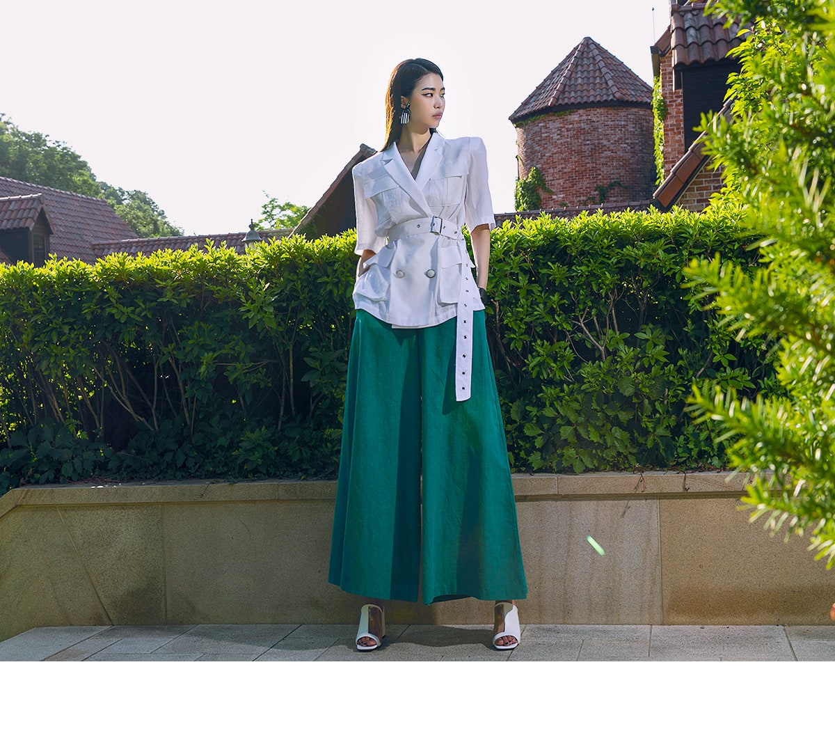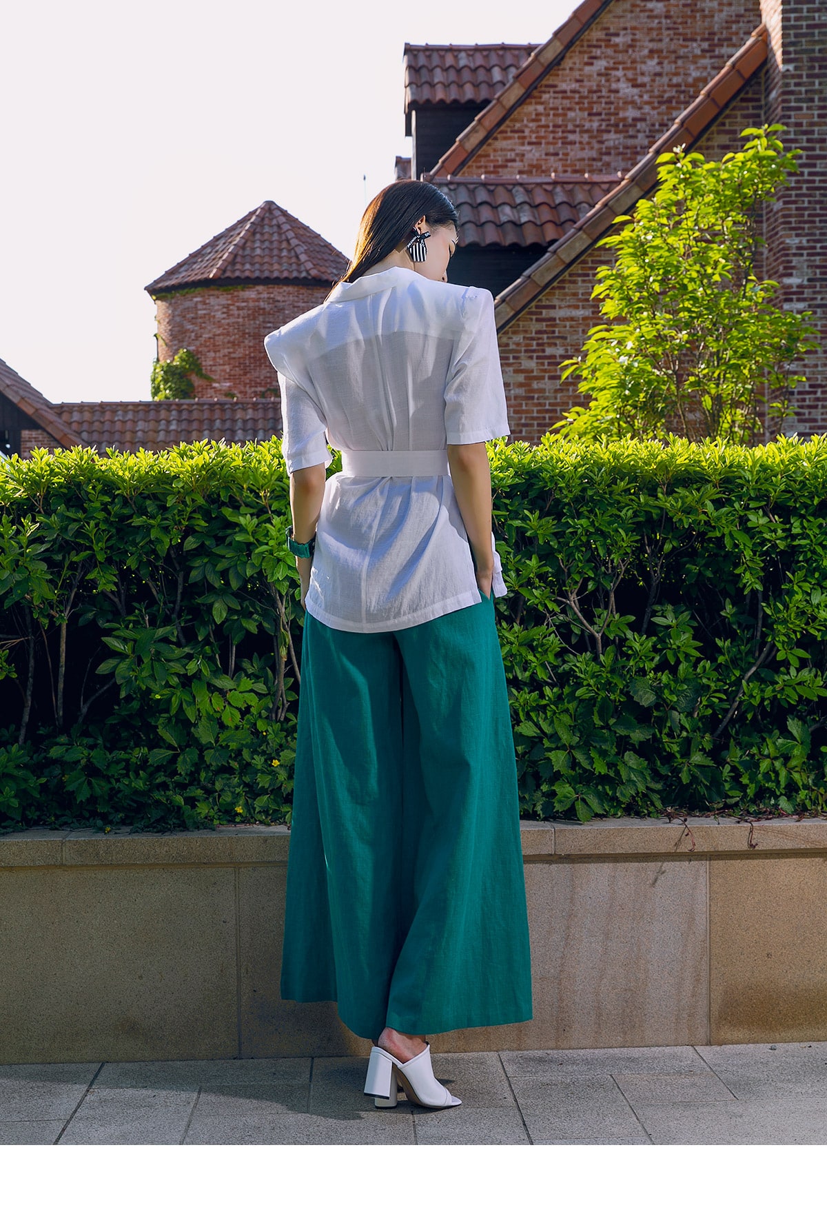 P1873 그레이스 린넨 와이드 팬츠 Blue green